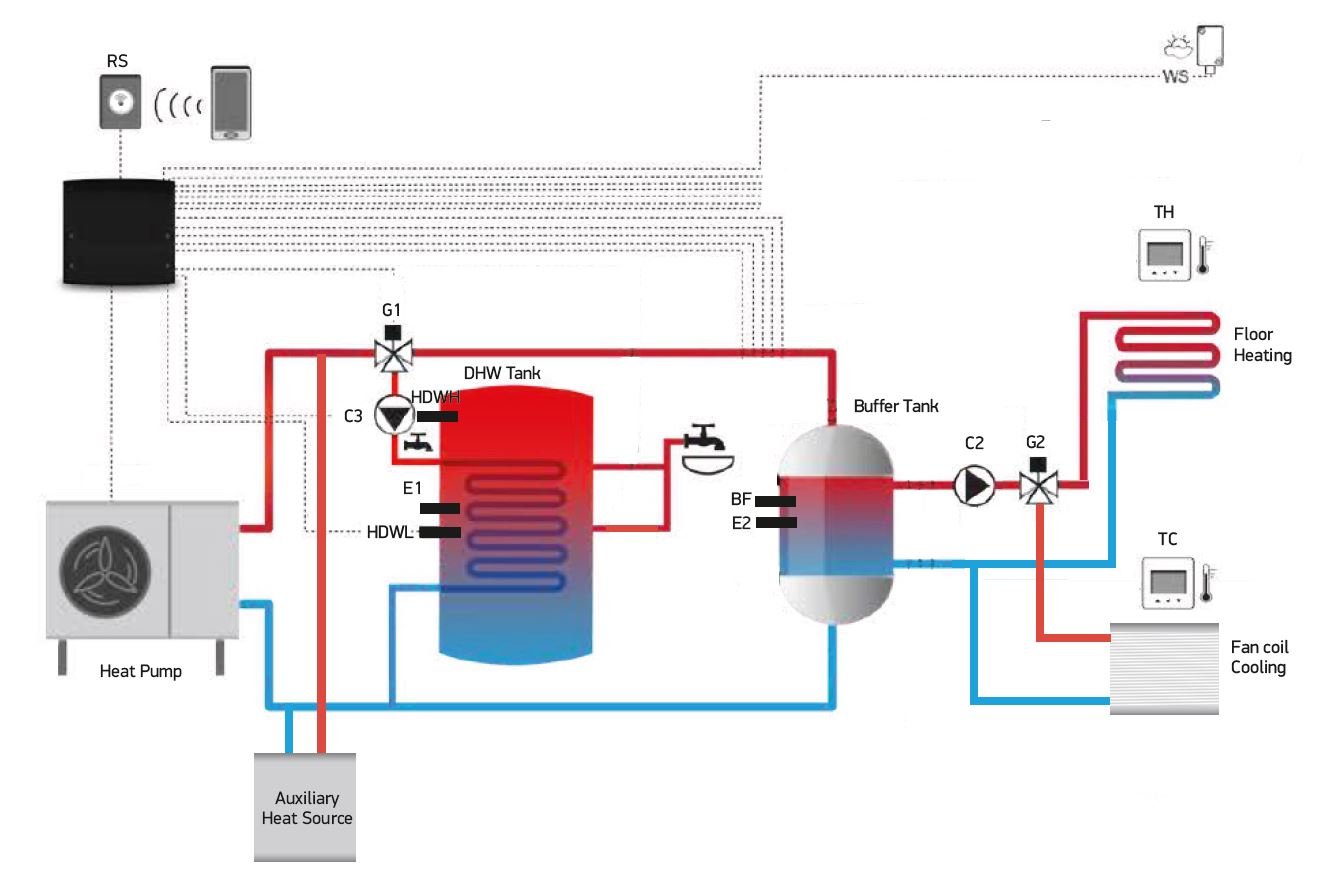 The heat pump has integrated Wi-Fi function and mobile application, so that the user can control the heat pump anywhere and anytime.