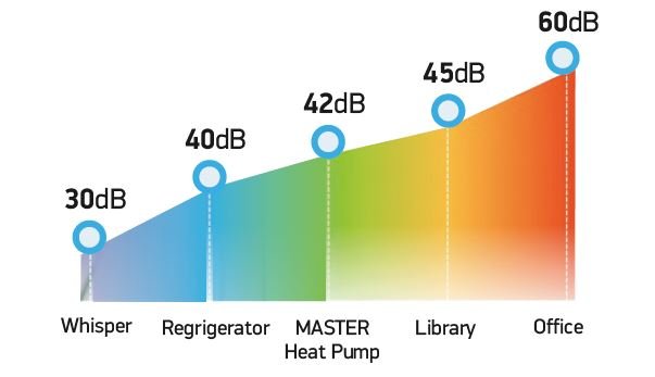 The MASTER heat pump is using R32 refrigerant, which has 70% lower GWP (global warming potential) compared to older types of refrigerant, and can reach output temperature up to 60°C.